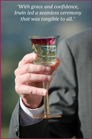 “Working with Irwin to create our wedding ceremony was a pleasure at every step along the way; the best part of our wedding planning for sure! We felt that the ceremony belonged to us while being deeply enriched by Irwin’s many creative and thoughtful suggestions. Irwin is an intuitive storyteller who infused our ceremony with wisdom and meaning for all who attended, many from very different cultural and religious backgrounds. Not a dry eye in the house - and he’s funny too!